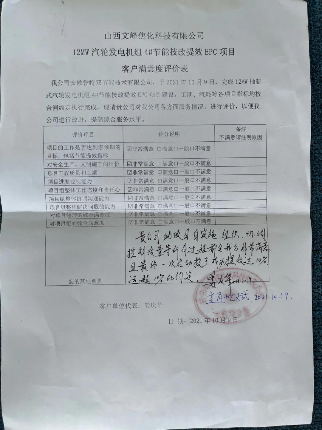 同時,客戶對我公司的項目建設(shè)綜合管理服務(wù)水平給予高度評價,對我公司在項目建設(shè)過程中勇于創(chuàng)新、敢于碰硬的優(yōu)良作風(fēng)給予高度贊揚,在此,我公司誠摯對用能單位、外協(xié)兄弟單位、項目負(fù)責(zé)的各位同事致以崇高的敬意和衷心的感謝!