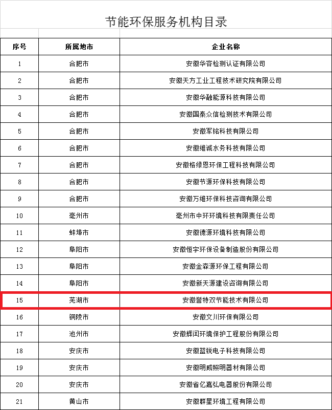 此次我公司雙入選安徽省2019年度全省工業(yè)領(lǐng)域節(jié)能環(huán)保產(chǎn)業(yè)“五個一百”節(jié)能環(huán)保服務(wù)機構(gòu)目錄與節(jié)能環(huán)保先進技術(shù)目錄,標(biāo)志著我公司工業(yè)節(jié)能技術(shù)進一步獲得省級認(rèn)可和支持。即是榮譽,更是鞭策,公司全員決心以高昂的斗志,團結(jié)一致、努力拼搏、再創(chuàng)新高、回饋各方!