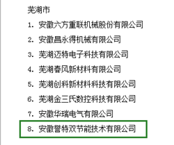 2018年8月29日,安徽省經(jīng)信委通過官網(wǎng)發(fā)布——2018年度安徽省成長型小微企業(yè)認(rèn)定名單,我公司安徽譽(yù)特雙節(jié)能技術(shù)有限公司喜獲認(rèn)定,為蕪湖市僅有的八家上榜企業(yè)之一,也是蕪湖國家級(jí)經(jīng)濟(jì)技術(shù)開發(fā)區(qū)和蕪湖高新技術(shù)創(chuàng)業(yè)園區(qū)唯一的入選企業(yè),含金量頗高。
