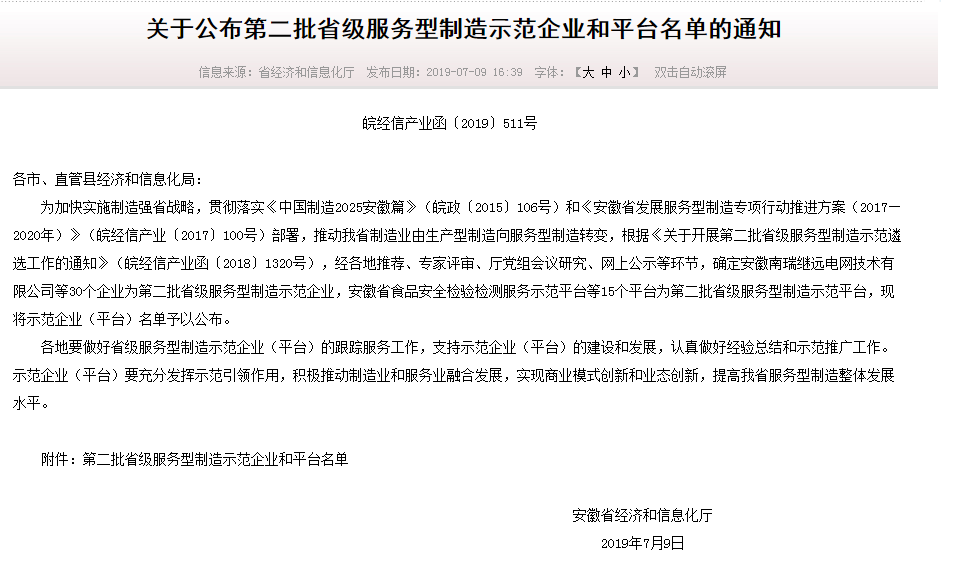 熱烈祝賀我公司認(rèn)定為安徽省第二批省級(jí)服務(wù)型制造示范平臺(tái)