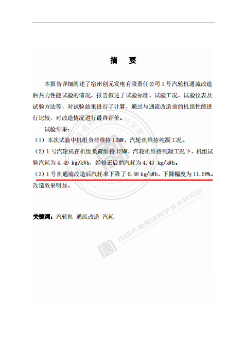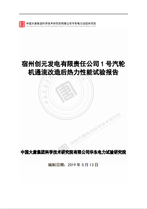 宿州創(chuàng)元發(fā)電有限責(zé)任公司1#汽輪機(jī)組技改提效項(xiàng)目 順利通過節(jié)能量驗(yàn)收