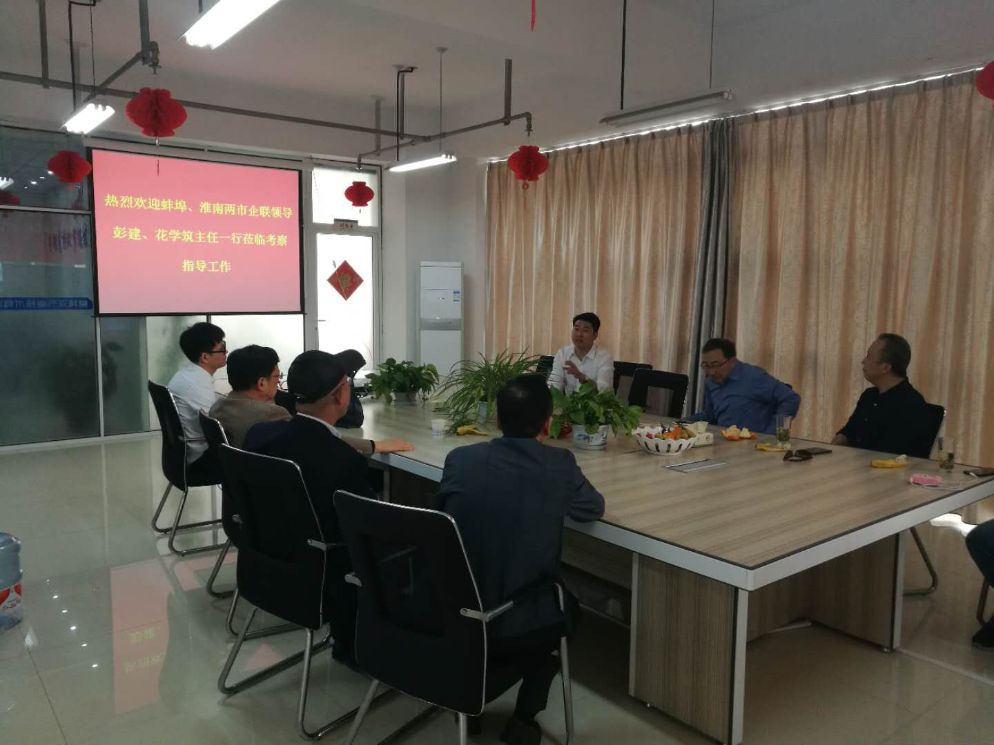 4月20日,蚌埠、淮南兩市企業(yè)聯(lián)合會領(lǐng)導彭建、花學筑主任一行蒞臨我公司考察指導工作,市經(jīng)信委、創(chuàng)業(yè)園區(qū)相關(guān)領(lǐng)導與公司董事長車延花熱情接待了彭建、花學筑主任一行。
