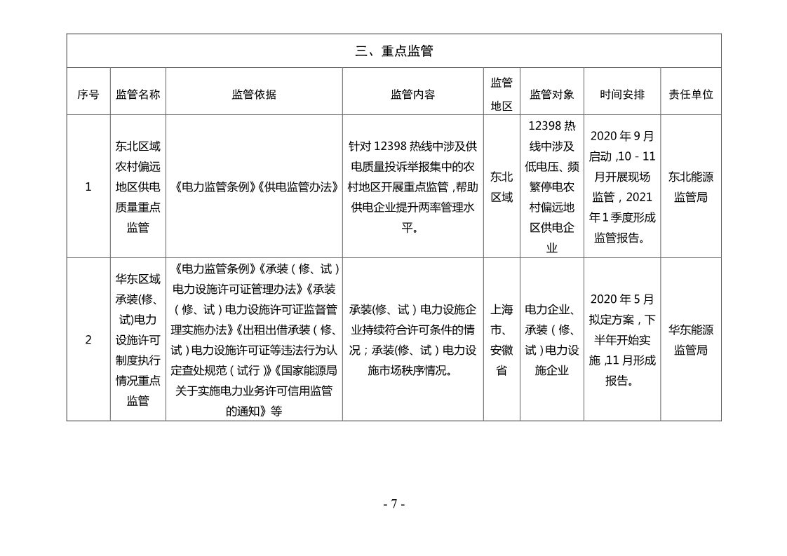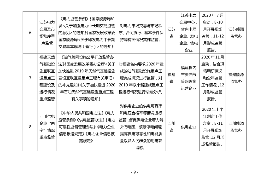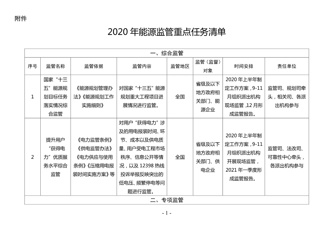 附件:2020年能源監(jiān)管重點(diǎn)任務(wù)清單