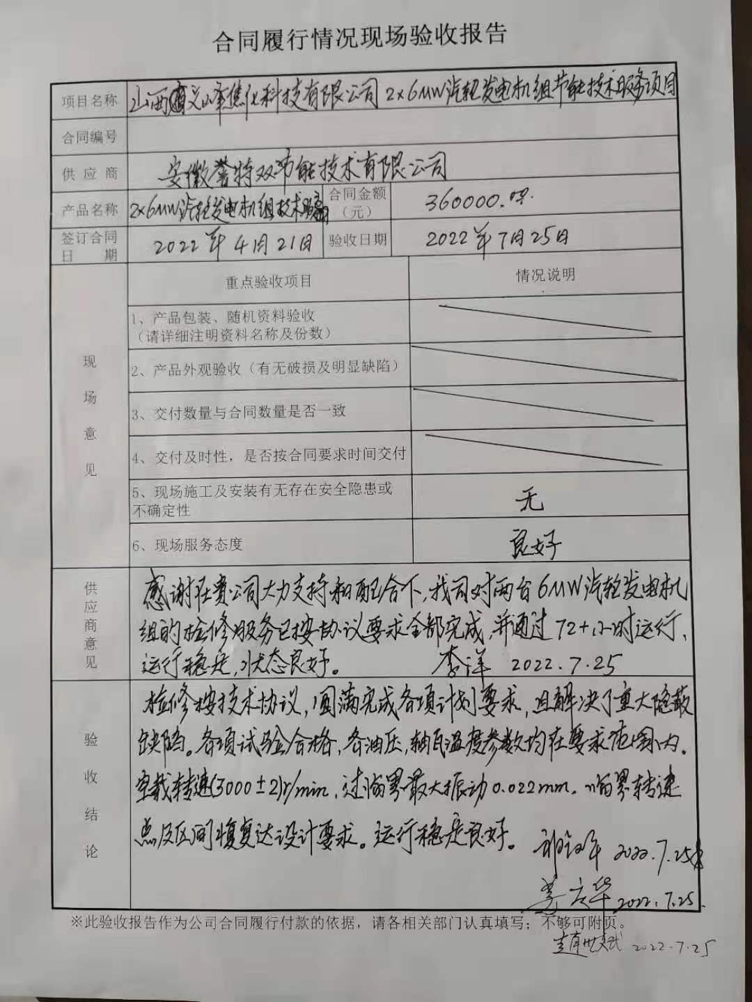 山西文峰焦化兩臺(tái)6MW汽輪機(jī)組檢修技術(shù)服務(wù)項(xiàng)目 順利通過(guò)工程驗(yàn)收