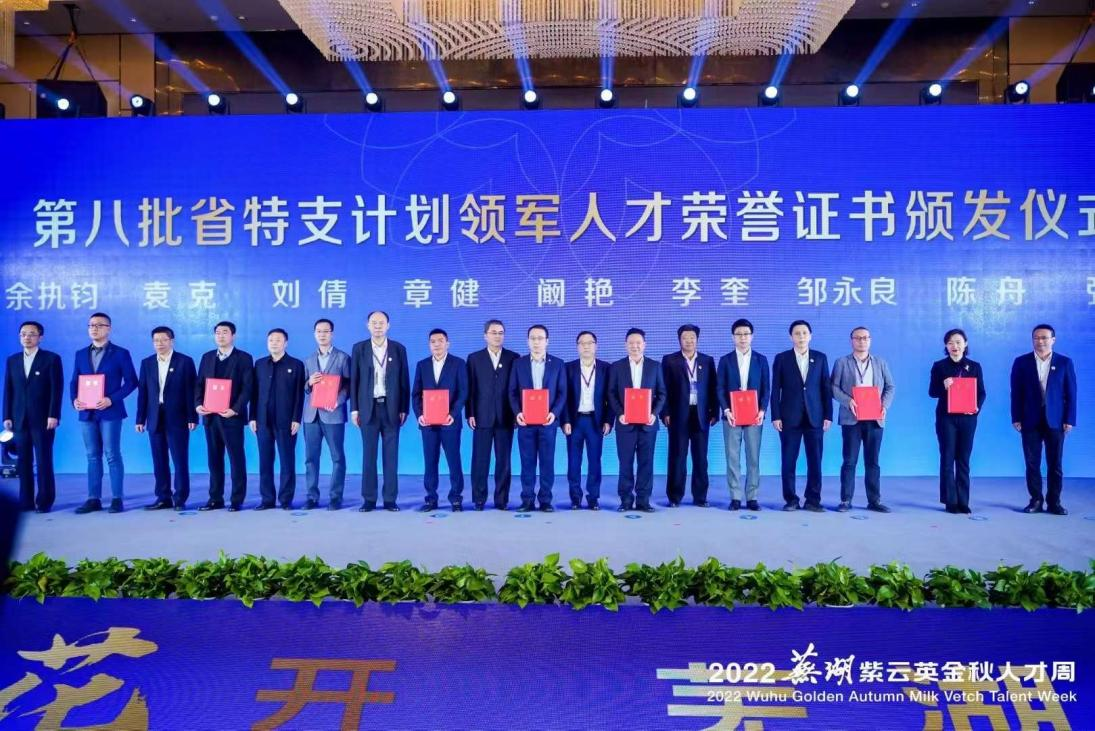 近日,安徽省委組織部公布了第八批“特支計劃”入選名單,我公司總經(jīng)理袁克同志成功入選安徽省“特支計劃”創(chuàng)新創(chuàng)業(yè)領軍人才,受邀參加2022蕪湖紫云英金秋人才周“特支計劃”領軍人才榮譽證書頒獎儀式。
