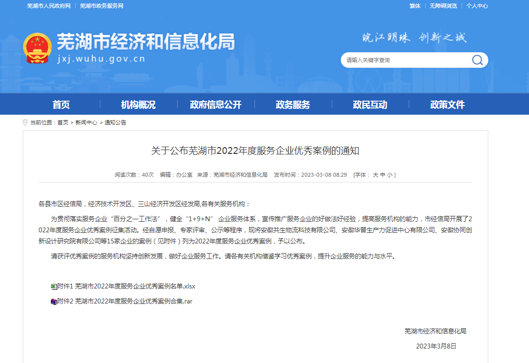 此次蕪湖市2022年度服務(wù)企業(yè)優(yōu)秀案例征集工作,由蕪湖市經(jīng)濟(jì)和信息化局遴選,旨在貫徹落實(shí)服務(wù)企業(yè)“百分之一工作法”,健全“1+9+N”企業(yè)服務(wù)體系,宣傳推廣服務(wù)企業(yè)的好做法好經(jīng)驗(yàn),提高服務(wù)機(jī)構(gòu)的能力。此次入選案例重點(diǎn)圍繞信息咨詢、技術(shù)創(chuàng)新、人才培訓(xùn)、市場(chǎng)開(kāi)拓、管理咨詢、質(zhì)量管理、創(chuàng)業(yè)輔導(dǎo)、投資融資服務(wù)、信息化應(yīng)用服務(wù)等服務(wù)領(lǐng)域開(kāi)展遴選工作。