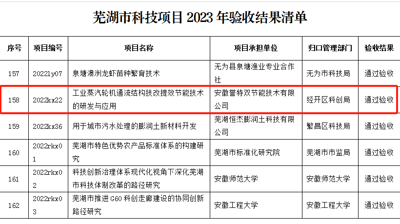 科技項(xiàng)目“工業(yè)蒸汽輪機(jī)通流結(jié)構(gòu)技改提效節(jié)能技術(shù)的研發(fā)與應(yīng)用”通過蕪湖市科技局驗(yàn)收
