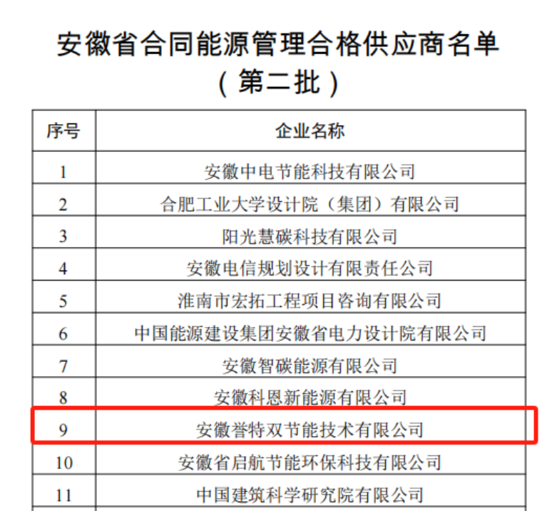 喜訊--熱烈祝賀公司雙入選安徽省第二批節(jié)能減煤降碳診斷服務(wù)機(jī)構(gòu)和合同能源管理合格供應(yīng)商名單