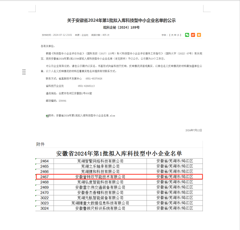 入庫(kù)安徽省2024年第一批科技型中小企業(yè)
